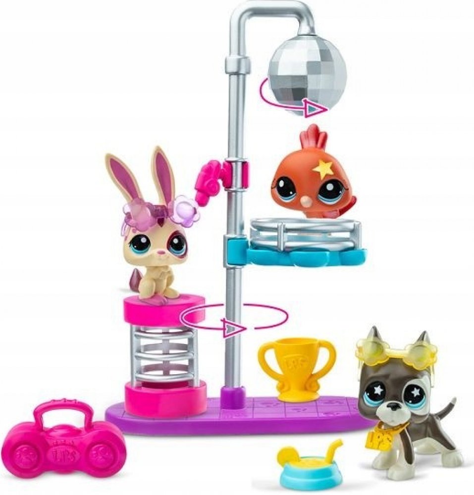 Připravte se na zábavu se sadou Littlest Pet Shop Disco Nights! Tato sada obsahuje 3 tančící mazlíčky, kteří jsou připraveni tančit v jasných světlech disco koule. Ať už se točíte na tanečním parketu nebo předvádíte své nejnovější pohyby, tato herní sada je ideální pro děti i sběratele. Se 7 zábavnými doplňky – včetně skvělých brýlí, mikrofonu, trofeje a dalších – budou vaši mazlíčci připraveni na párty celou noc. Ústředním bodem sady je vyvýšená diskokoule s otočnými plošinami, kde se vaši mazlíčci mohou točit a stylově tančit! Použijte sběratelskou kartu k odhalení jedinečné osobnosti, úrovně a vzácnosti vašeho mazlíčka – bude nejodvážnější, nejelegantnější nebo něco úplně jiného? Navíc odemkněte digitální překvapení, jako jsou mince, drahokamy nebo skvělé digitální doplňky, pomocí kódu na sběratelské minci. LPS Disco Night zahrnuje: 3 LPS mazlíčci 7 barevných doplňků 1 sběratelská karta, abyste objevili jedinečnost svého mazlíčka 1 virtuální kód Doporučený věk: 4+