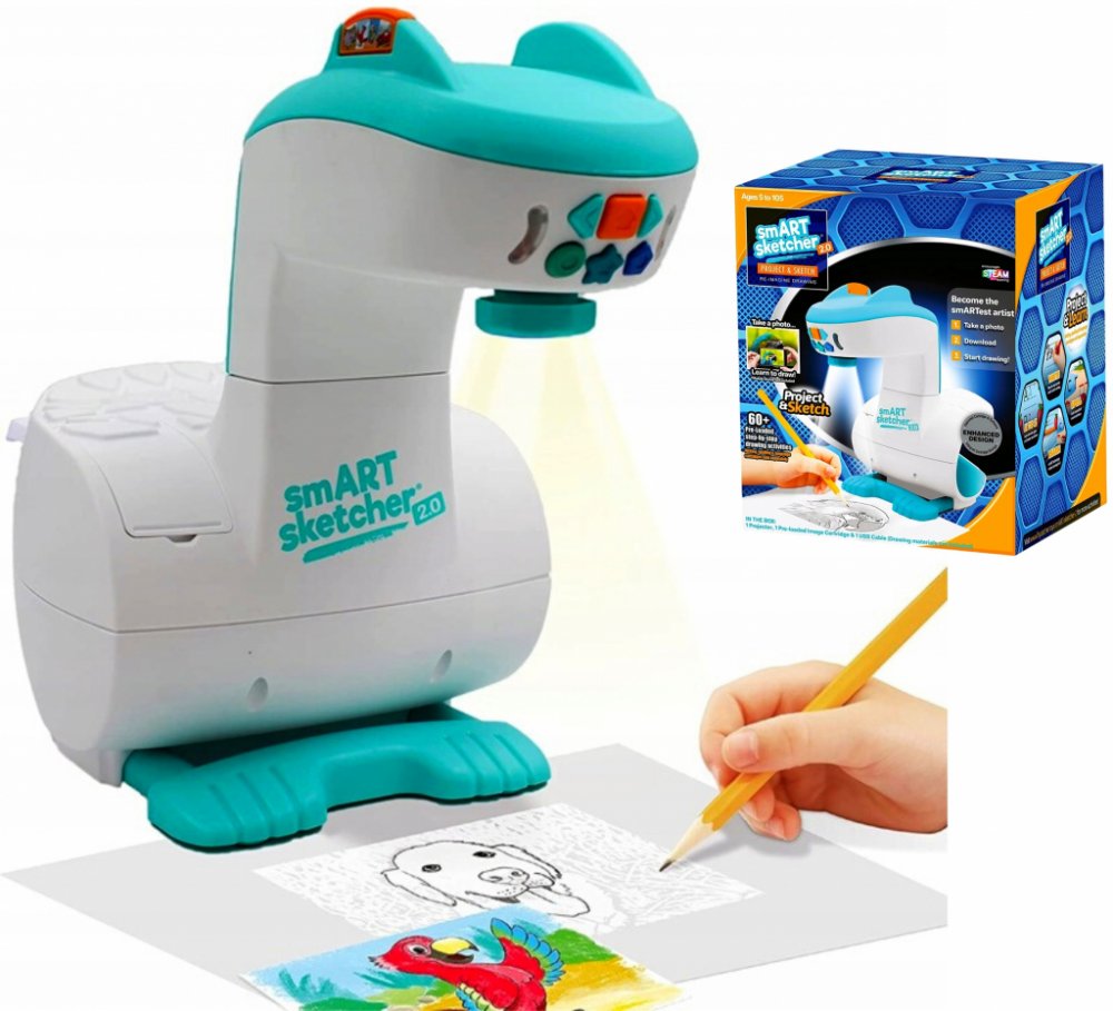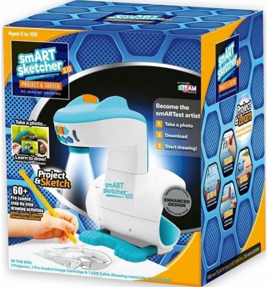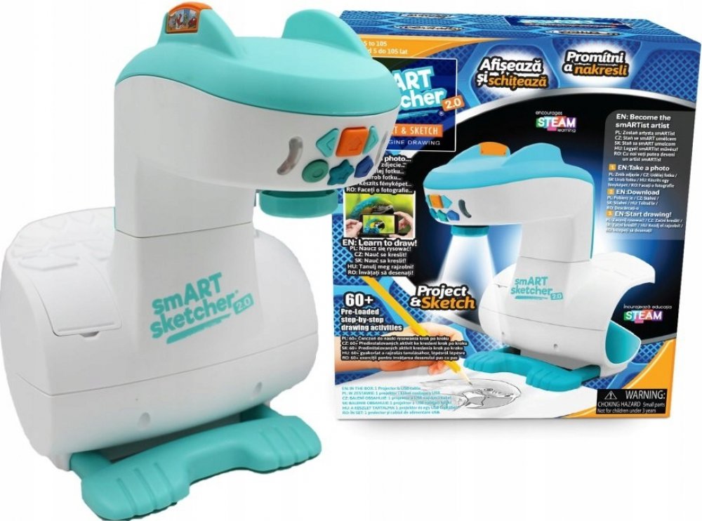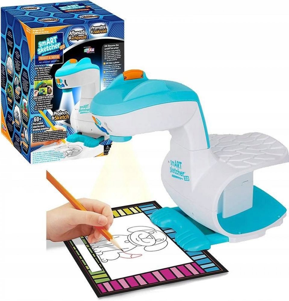 SmART kreslící projektor a proprietární aplikace ukazuje dětem dětem, jak kreslit a psát jako profesionál pomocí oblíbených fotografií, jak se naučit kreslit obrázky a obsah podle osnov. Pokyny krok za krokem vedou malé ruce celým procesem. Děti si mohou stáhnout fotografie z mobilního zařízení nebo použít předinstalované balíčky aktivit. STEAM učení je vzdělávací přístup k učení, který využívá vědu, technologie strojírenství, umění a matematiku jako přístupové body k vedení dětského bádání, dialogu a kritického myšlení. Kreslí si vaše dítě rádo? Inovativní projektor vytvořen, aby pomohl dítěti objevit své výtvarné nadání. Spolehlivé zařízení v úplně nové verzi obsahuje 1 kartu-60 obrázků, které poslouží jako inspirace k tvoření neobvyklých výtvorů. To není vše. Projektor vydává zvuky imitující kreslené postavičky/zvířete/předmětu a také napomáhá výuce angličtiny. Stačí vyhláskovat slovo a začít tvořit. Začal na papíru vznikající pejsek štěkat? Vyvolej v dítěti touhu tvořit s novým Smart Sketcher.Objevuj své možnosti díky pokročilé hračce, která napomáhá cvičit skicování na papíru, soustředění a představivost – a to není vše! Smart Sketcher formou asociace a zábavy učí dítě angličtinu milým a bezprostředním způsobem. Díky cvičením psaní v angličtině, proměňuje slovo na obrázek, který si vaše dítě snadno zapamatuje.Výrobce projektoru Smart Sketcher zaručuje bezpečnost používání nejmladším. Nabíjí pomocí USB kabelu.