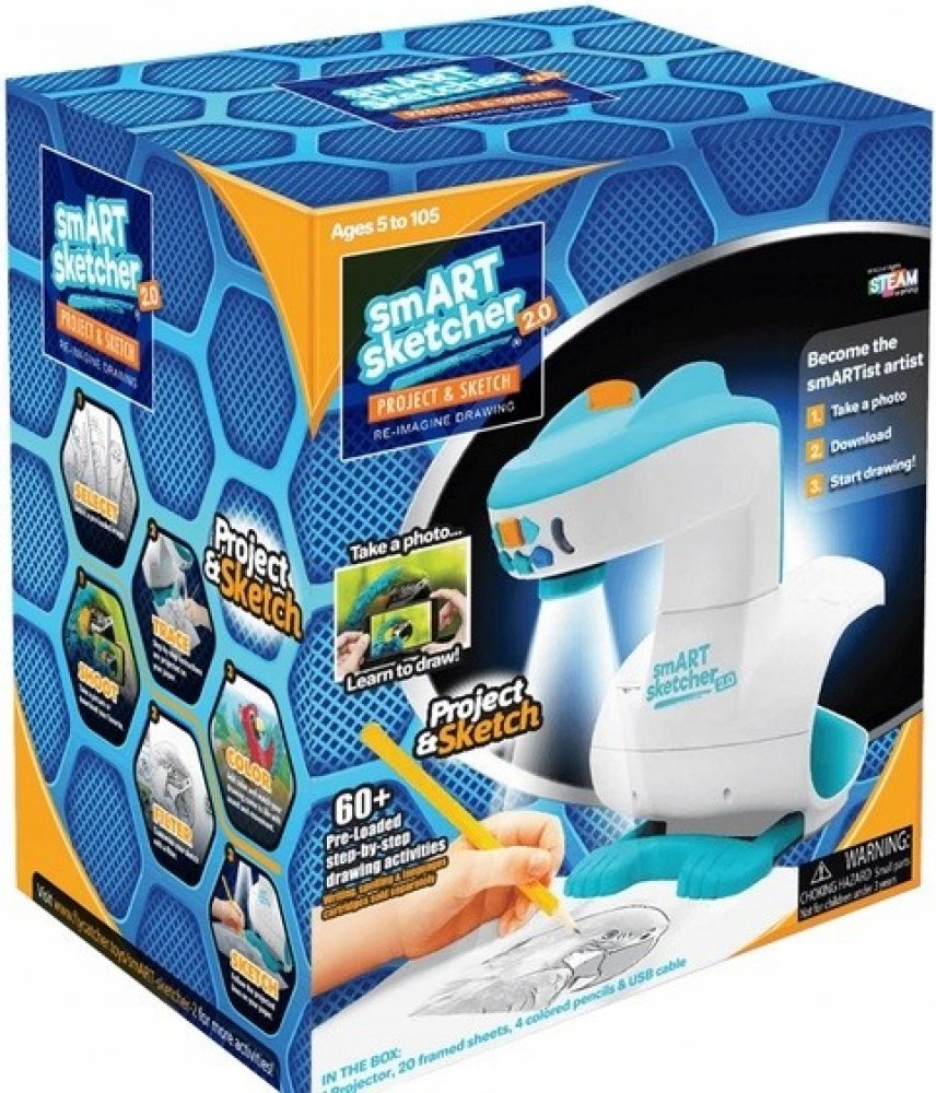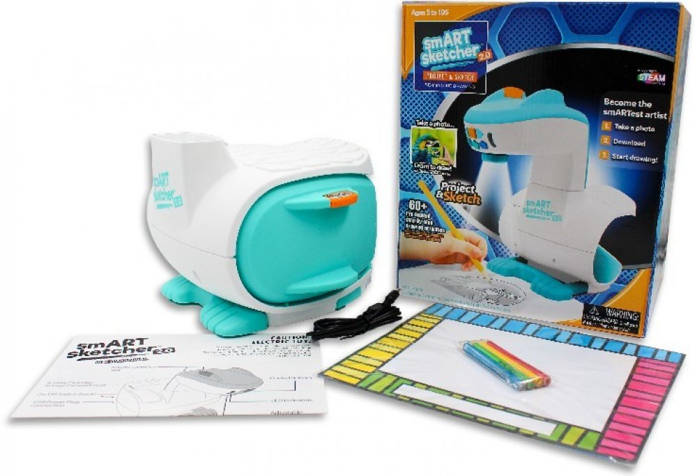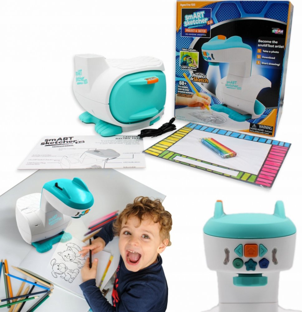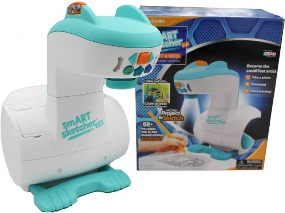 SmART kreslící projektor a proprietární aplikace ukazuje dětem dětem, jak kreslit a psát jako profesionál pomocí oblíbených fotografií, jak se naučit kreslit obrázky a obsah podle osnov. Pokyny krok za krokem vedou malé ruce celým procesem. Děti si mohou stáhnout fotografie z mobilního zařízení nebo použít předinstalované balíčky aktivit. STEAM učení je vzdělávací přístup k učení, který využívá vědu, technologie strojírenství, umění a matematiku jako přístupové body k vedení dětského bádání, dialogu a kritického myšlení. Kreslí si vaše dítě rádo? Inovativní projektor vytvořen, aby pomohl dítěti objevit své výtvarné nadání. Spolehlivé zařízení v úplně nové verzi obsahuje 1 kartu-60 obrázků, které poslouží jako inspirace k tvoření neobvyklých výtvorů. To není vše. Projektor vydává zvuky imitující kreslené postavičky/zvířete/předmětu a také napomáhá výuce angličtiny. Stačí vyhláskovat slovo a začít tvořit. Začal na papíru vznikající pejsek štěkat? Vyvolej v dítěti touhu tvořit s novým Smart Sketcher.Objevuj své možnosti díky pokročilé hračce, která napomáhá cvičit skicování na papíru, soustředění a představivost – a to není vše! Smart Sketcher formou asociace a zábavy učí dítě angličtinu milým a bezprostředním způsobem. Díky cvičením psaní v angličtině, proměňuje slovo na obrázek, který si vaše dítě snadno zapamatuje.Výrobce projektoru Smart Sketcher zaručuje bezpečnost používání nejmladším. Nabíjí pomocí USB kabelu.