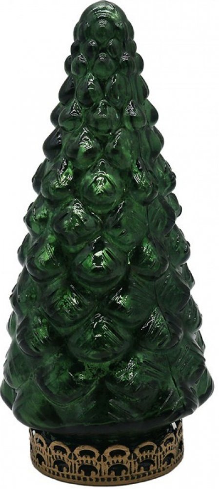 Tmavě zelený skleněný dekorační svítící stromek LED Tree Ø 8*16 cm Clayre & Eef