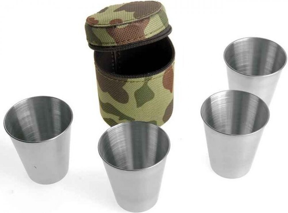 Praktická sada skleniček v cestovním pouzdře s maskáčovým vzorem, která se vždy hodí. Vzít ji můžete na turistiku, čundr nebo rybaření. Malé rozměry dokonce umožňují nosit ji v kapse. Provedení z kvalitní, lehce omyvatelné nerezové oceli. Počet panáků: 4 ks Objem každého panáka: 0,08L Materiál: nerez Celkový rozměr: 8 x 6 cmPoznámka: pouzdro této sady je v černé barvěGLS - Kurýr + 130 KčZásilkovna...
