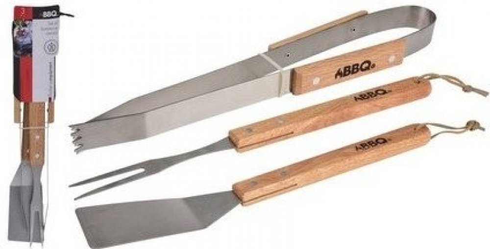 Nářadí grilovací BBQ nerez, dřev. rukojeť, sada 3díl.