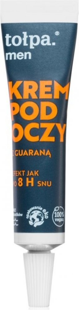Tołpa Men, 10 ml, Oční krémy a gely pro muže, Oční okolí je velmi citlivou oblastí, jeho kůže mimořádně tenká a křehká a díky tomu také náchylnější k projevům únavy a stárnutí. Vyžaduje proto i speciální péči se složením a konzistencí navrženými přesně pro její potřeby. Oční krém Tołpa Men si poradí se specifickými problémy očního okolí. Dodá pleti kolem očí potřebnou výživu a hydrataci, zlepší její kvalitu a navrátí jí vitalitu i svěží, odpočatý vzhled. Vlastnosti: vyhlazuje linky a jemné vrásky dodává pleti pružnost hloubkově hydratuje a vyživuje okolí očí redukuje oční váčky a kruhy pod očima okamžitě osvěží a probudí pleť omlazuje oční okolí bojuje proti projevům stárnutí pleti Složení: veganský produkt Jak používat: Ráno a/nebo večer naneste přípravek kolem kontur očí lehkým poklepáváním, dokud se plně nevstřebá.