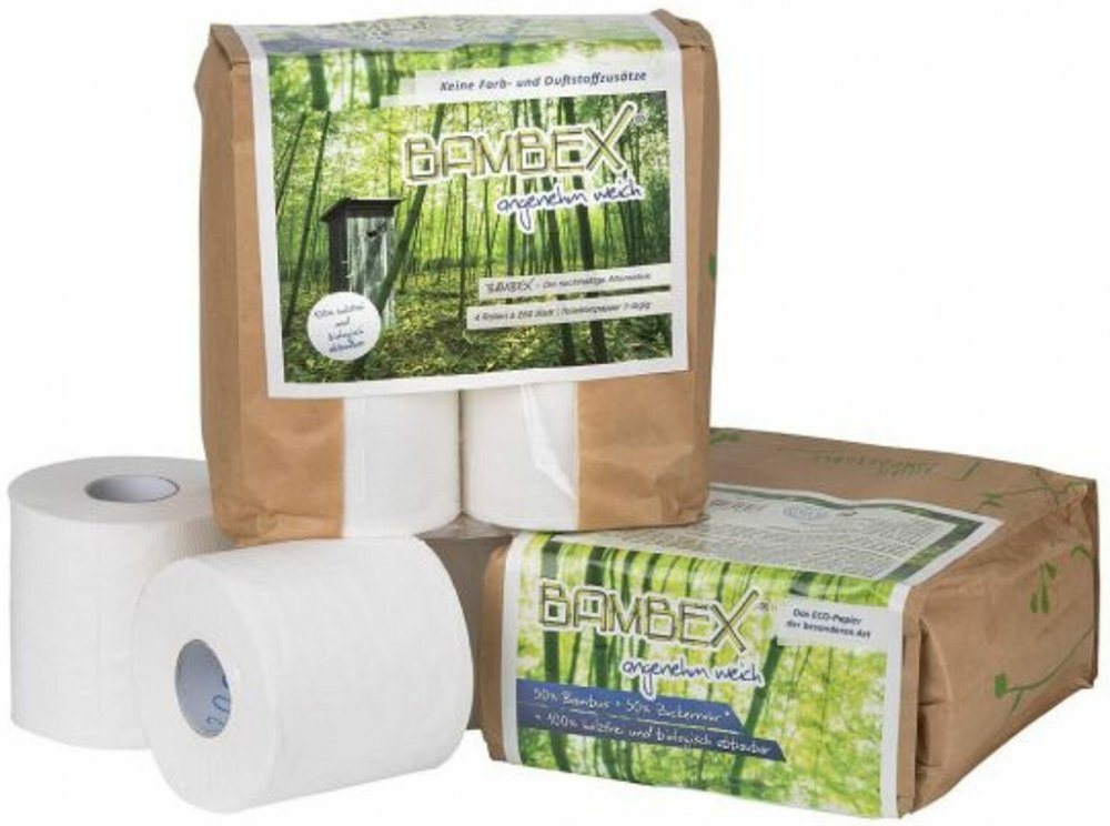 Toaletní papír Bambex Premium představuje ekologickou alternativu k běžně vyráběnému papíru na bázi dřeva. Vyrábí se z 50 % bambusu a 50 % cukrovarnické bagasy (odpad z cukrové třtiny) – tedy z rychle obnovitelných přírodních zdrojů, které pocházejí z kontrolovaného ekologického zemědělství a splňují přísnou certifikaci ISO 14001.