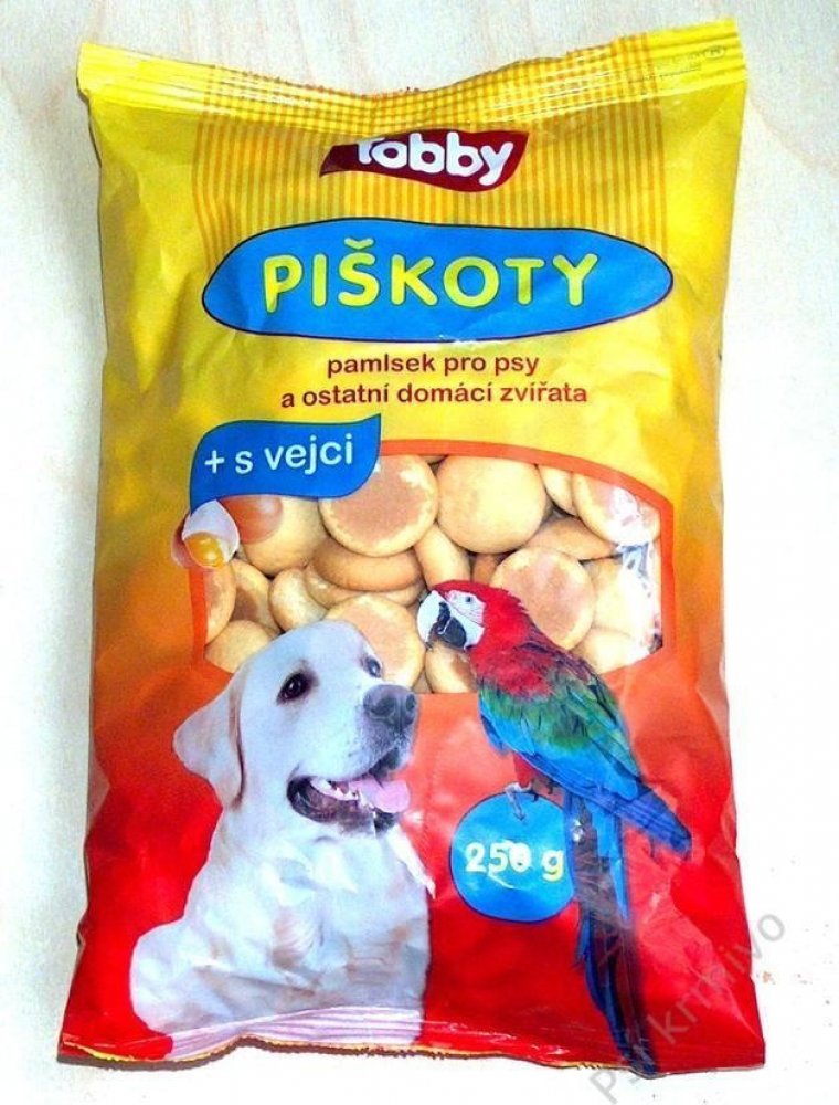 Piškoty krmné pro psy a jiná domácí zvířata jsou doplňkem stravy a podávají se jako pamlsek či odměna pro vašeho domácího mazlíčka. Tento druh pamlsku utužuje přátelský kontakt se zvířetem. Snížený obsah cukru v krmivu napomáhá zdravému životu zvířete a může příznivě napomáhat k dobré stravitelnosti a ke zvýšení chuti k jídlu. Zvýšený obsah vápníku napomáhá zvýšit tvrdost a pevnost kostí a zubů.
