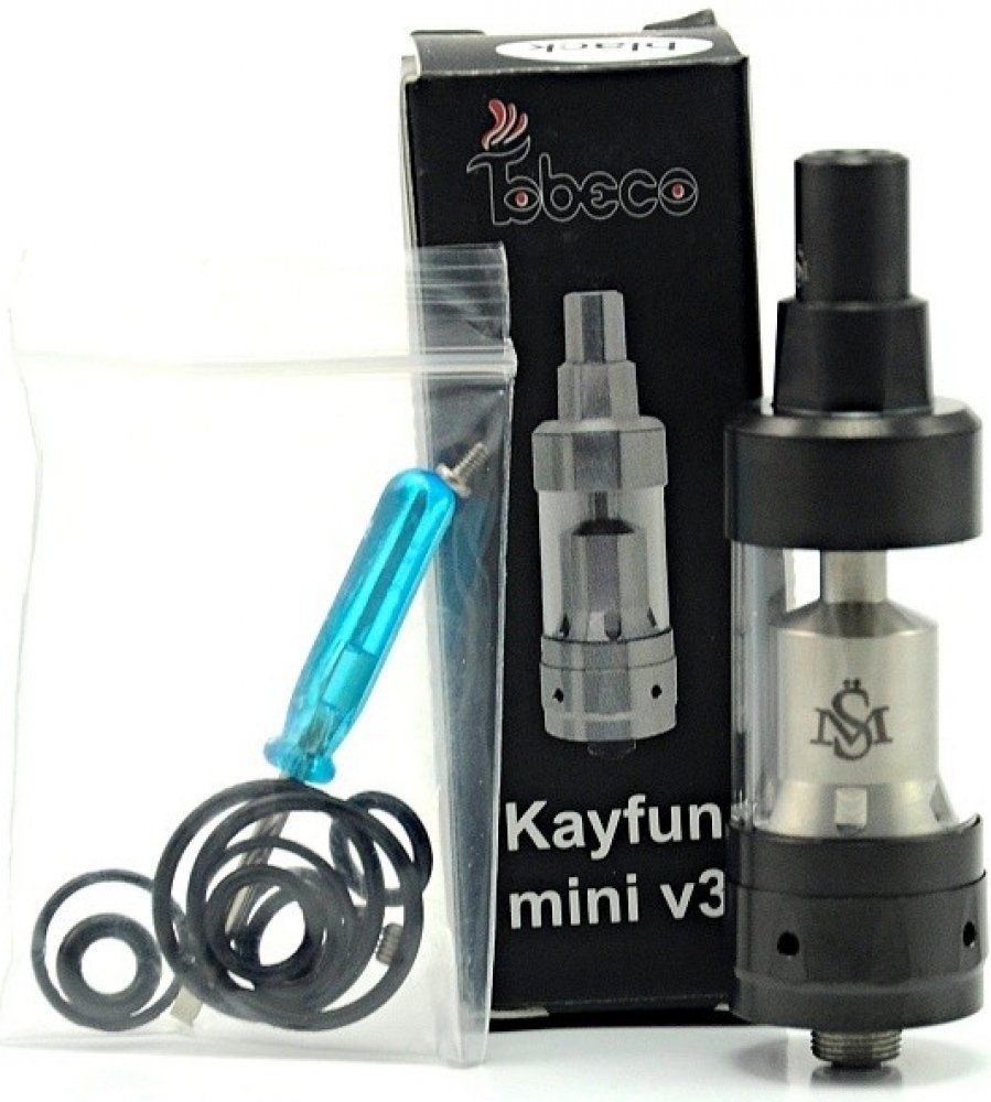 Kayfun Mini V3 od společnosti Tobeco je klonem DIY clearomizéru SvoëMesto Kayfun Mini V3. Jedná se o výborný DIY clearomizer pro klasické šlukování s průměrem 19mm. Kromě větších modů tak výborně pasuje i na menší trubkové mody.