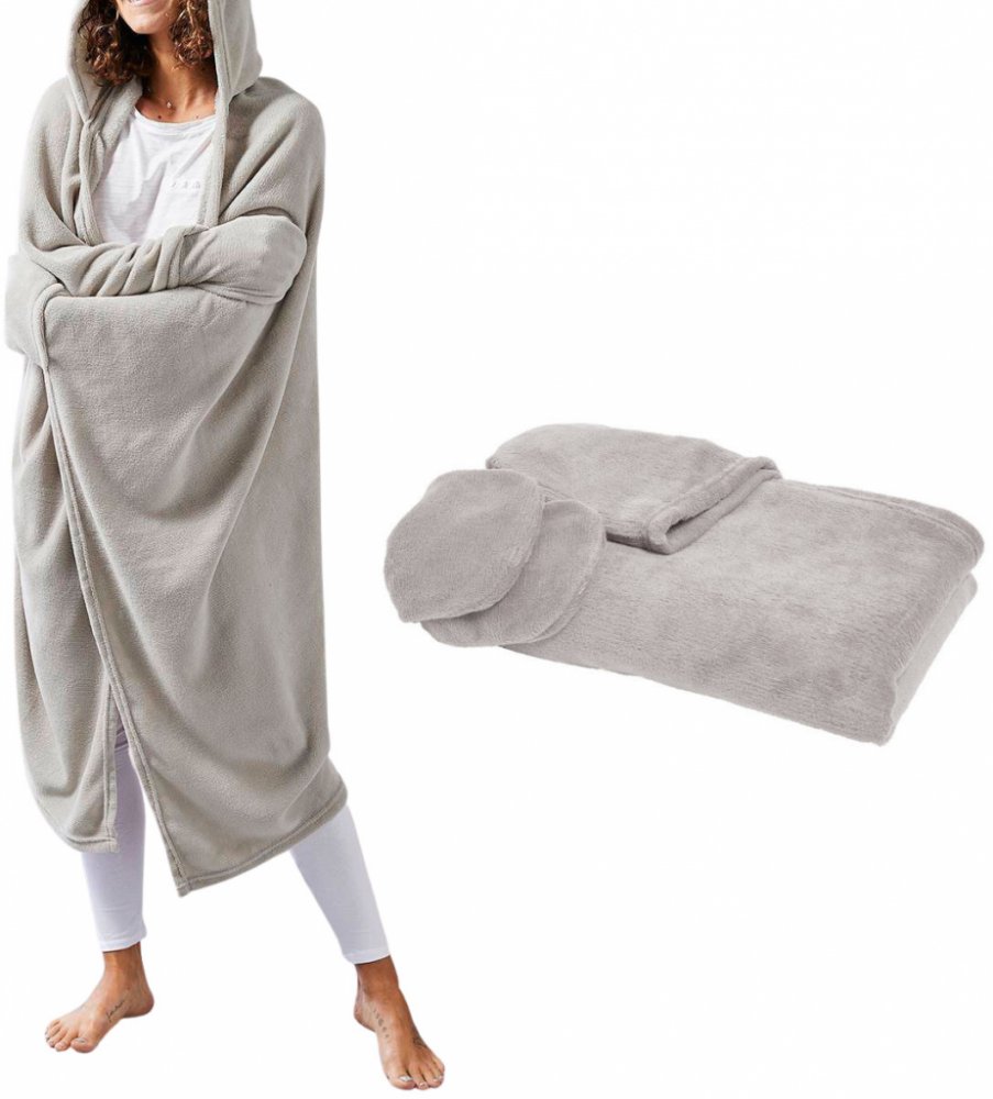 Deka s rukávy a kapucí ESSENTIAL, univerzální rozměr, 115 × 165 cm, béžová barva – skvělý doplněk na podzim, zimu i jako dárek pro každou příležitost.