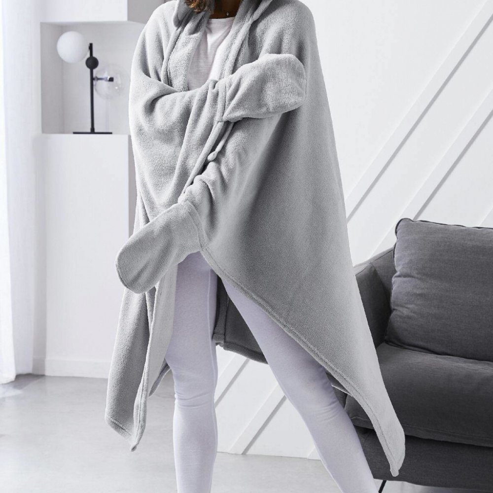 Deka s rukávy a kapucí ESSENTIAL, univerzální rozměr, 115 x 165 cm, šedá barva - skvělý doplněk na podzim, zimu i jako dárek pro každou příležitost.