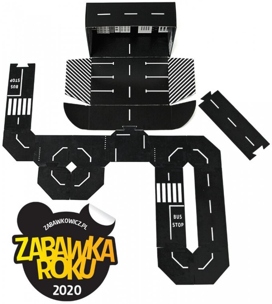 SADA MĚSTO o celkové délce 3 metry a šířce silnic 10 cm se skládá ze 14 silikonových oboustranných prvků: 4 dlouhých rovinek (délka 29,5 cm) včetně 2 autobusových zastávek a přechodů pro chodce, 6 zatáček a 4 křižovatek ve tvaru T, které umožňují postavit i kruhový objezd. Jednotlivé díly mají oboustranný potisk, který dětem umožňuje větší rozmanitost staveb. Součástí hračky je i funkční kartonová krabice s vnitřním potiskem města a parkoviště, která zároveň slouží i jako úložný box. Vhodné pro děti od 1 roku.Výrobky Toddleroad mají pozitivní ohlasy od učitelů a vývojových specialistů, kteří potvrzují jedinečný přístup a všestrannost těchto produktů doma i ve vzdělávacích zařízeních. Také byli oceněni v nejuznávanějších produktových soutěžích v Polsku a Velké Británii.NAVRŽENO PRO BATOLATA A PŘEDŠKOLÁKYPodporuje jejich rozvoj v souladu s jejich fyzickými a duševními možnostmi:
