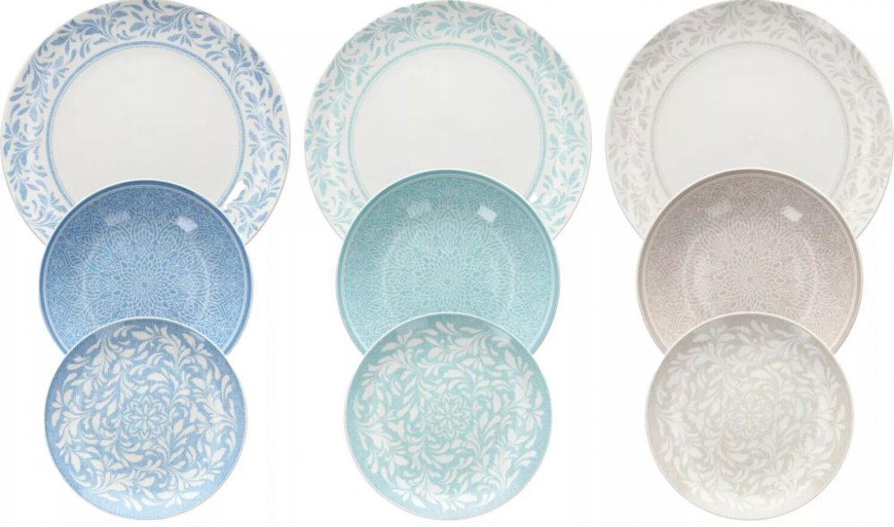 - Obsah sady: 6x mělký talíř (ø 190 mm), 6x mělký talíř (ø 270 mm), 6x hluboký talíř (ø 200 mm)