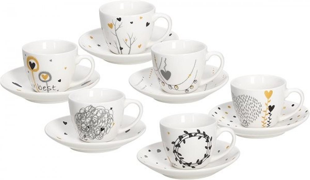 Balení 6 šálků na kávu s podšálky z řady Iris Goldy.