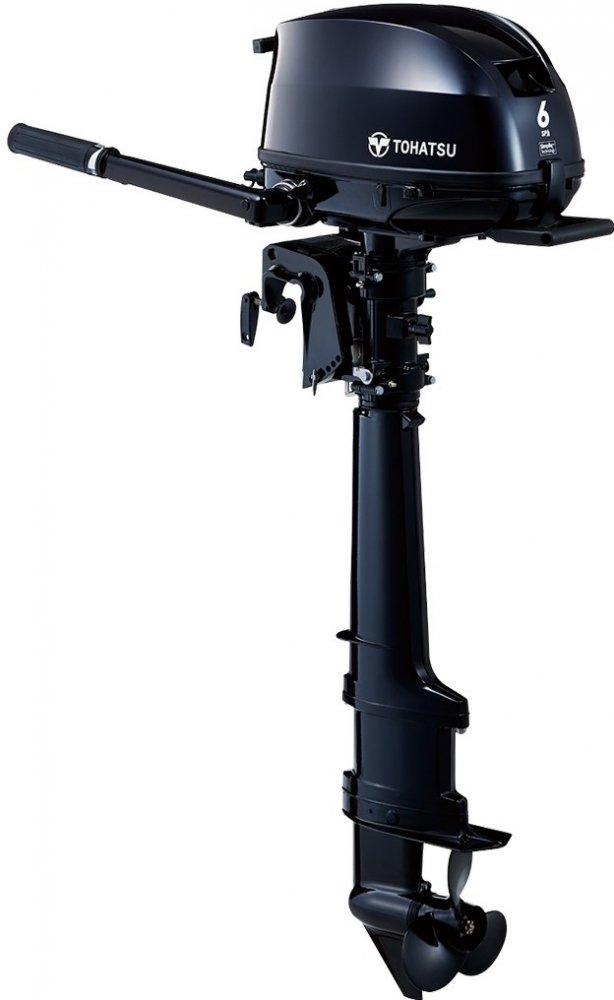Čtyřtaktní motor Tohatsu o výkonu 6 HP obsahu 123 ccm3 s extra dlouhou nohou UL/25" a dobíjením