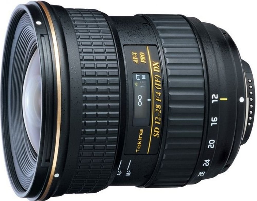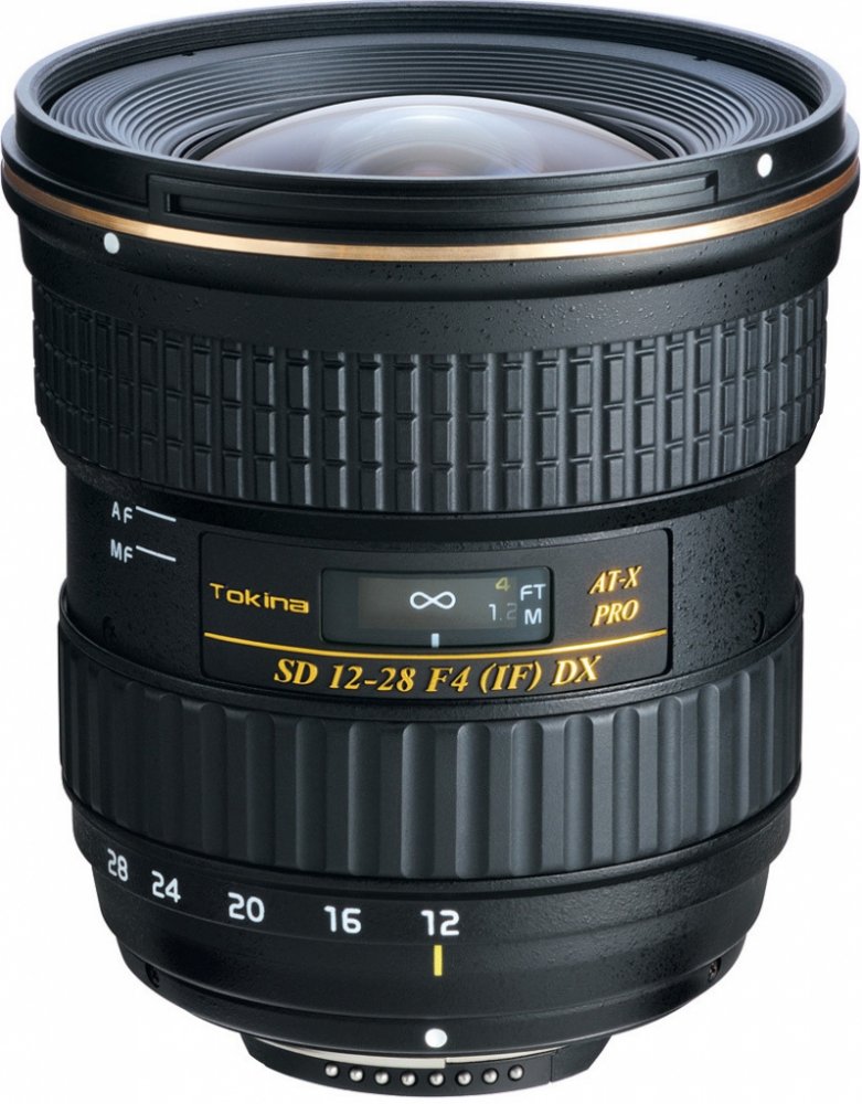 Objektiv AT-X 12-28 PRO DX 12-28 mm f/4 je nástupce oblíbeného objektivu Tokina AT-X 124 PRO DX II (12-24 mm f/4). Rozšíření ohniskové vzdálenosti z 24 mm na 28 mm přispívá ke zvýšení použitelnosti objektivu. Nová optická konstrukce je podřízena výkonu současných 20 mega-pixelových DX snímačů. Další změny byly provedeny s cílem zlepšení optických vlastností objektivu, jako je barevné vyvážení a ostrost. Asférický prvek umístěný v přední skupině spolu s lisovanými asférickými prvky (SD) v zadní optické skupině dokonale korigují chromatickou aberaci a zkreslení. Použití SD skla FK01 a FK03 se super nízkou disperzí minimalizuje vznik sekundárního spektra. (Sklo FK01 a FK 03 svými optickými vlastnostmi nahrazuje použití fluoridových prvků.) SD sklo minimalizuje sekundární spektrum vzniklé chromatickou aberací. U tohoto objektivu se používá optické sklo FK01 a FK03, které mu dává vlastnosti SD (APO). Použití SD skla propůjčuje objektivu excelentní obrazovou kvalitu, koriguje barevnou aberaci celého obrazu a umožňuje přesné zaostření všech barev na rovině obrazového snímače. Vylepšení přesnosti a výkonu AF je dosaženo použitím senzoru GMR umístěného na řídící AF jednotce. SD-M modul (Silent Drive –Module) výrazně snižuje hlučnost AF mechanizmu. Verze pro Nikon je vybavena vestavěným zaostřovacím motorem. Rozměry objektivu jsou stejné jako u předchozího modelu AT-X 124 PRO DX II. Mechanismus One-touch Focus Clutch umožňuje rychlé přepínání mezi automatickým a manuálním zaostřováním pouhým posunem zaostřovacího kroužku směrem dopředu a dozadu. Objektiv má plynulý a přesný chod ostřícího kroužku v manuálním režimu.