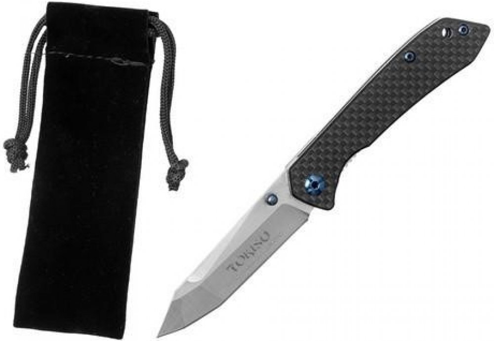Malý zavírací nůž Tokisu 18451, jednoruční otevírání, čepel uložena na kuličkovém ložisku, střenky z uhlíkového vlákna, pojistka linerlock, nylonový sáček.