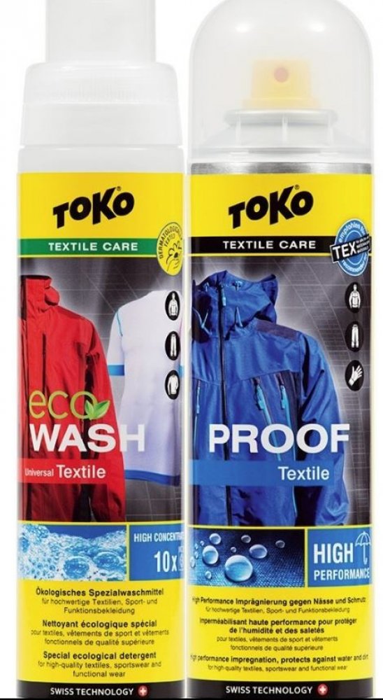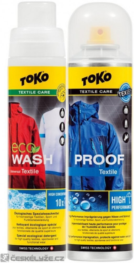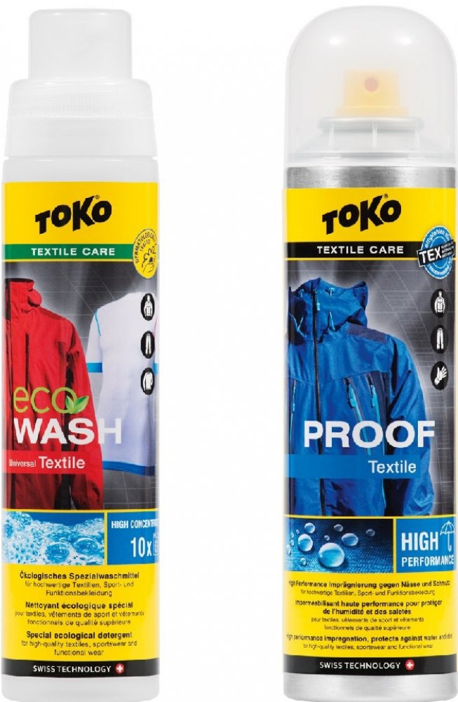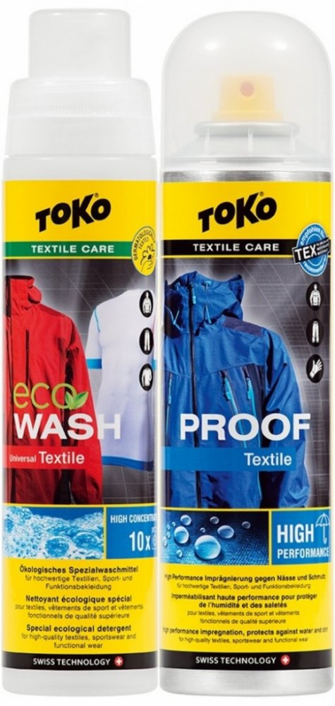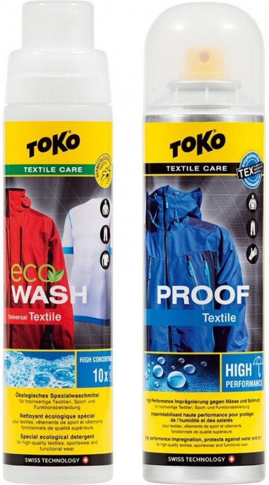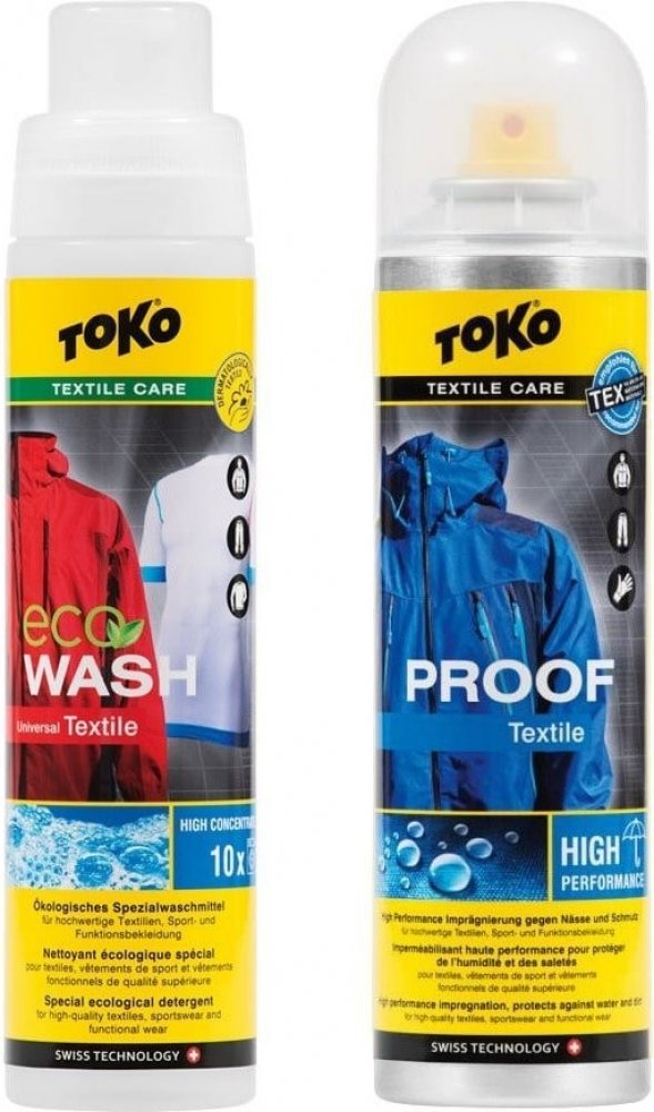 Nejprodávanější sada, skládající se z intenzivní impregnace Textile Proof a speciálního pracího prostředku Eco Textile Wash pro funkční a nepromokavé oblečení.