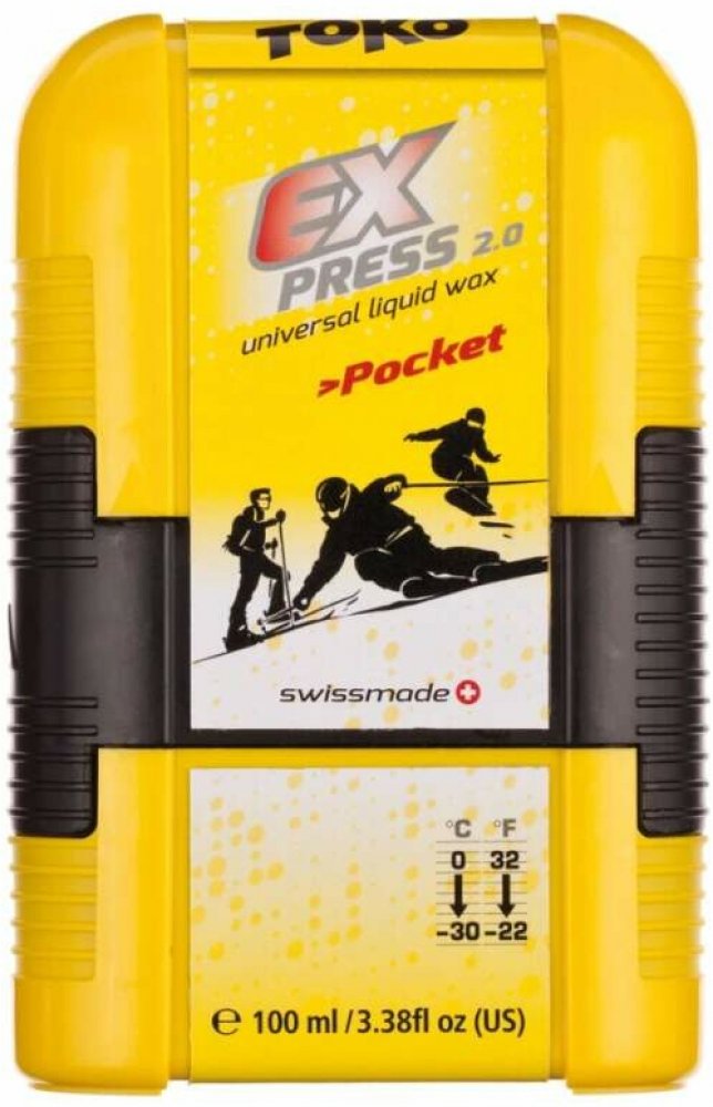 TOKO Express Pocket 100ml (5509263) 0°C až -30°C Univerzální kluzný vosk v tekuté podobě v praktickém balení do kapsy s aplikátorem a leštícím proužkem. Snadná aplikace na suchou lyži, po krátkém zaschnutí se leští a je hotovo. Neměl by chybět v žádné výbavě sportovníhoa turistického lyžaře.