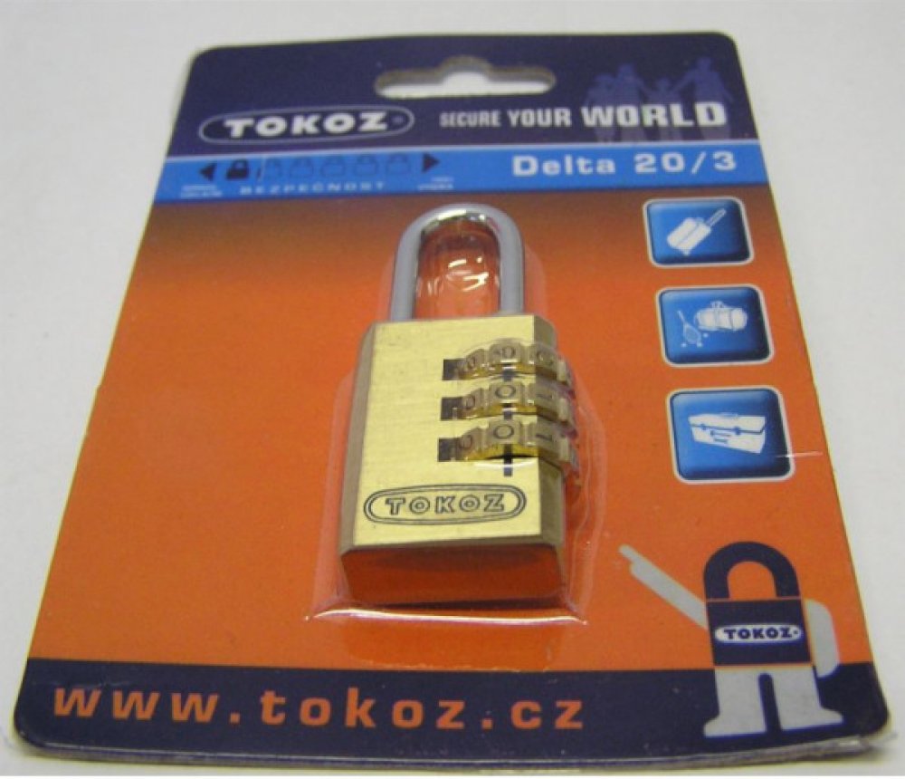 Visací zámek TOKOZ Delta 20/3 na třímístný kód, určený nejen pro zavazadla od českého výrobce TOKOZ.