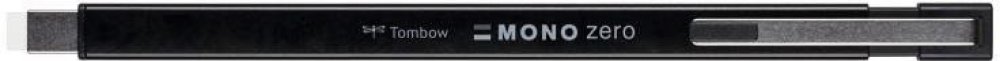 Tombow Mono Zero je gumovací tužka (guma v tužce) pro profesionální, přesnou a čistou práci. Tlačítkovým mechanismem, podobným mikrotužce, vysunete gumovací náplň z kovového hrotu. Výrobce Tombow Japan. Tato pryž v tužce má elegantní kovové tělo v matném černém designu.