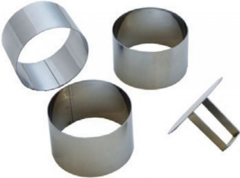 TOMGAST Formy kruhové + vytlačovátko 55 mmKruhové formy jsou perfektní k tvarování dezertů a jiných delikates. Součástí balení je i vytlačovátko, které vám pomůže vyndat obsah formy.Formy kruhové + vytlačovátko 55 mmFormy kruhové + vytlačovátko 55 mmParametry Materiál: nerezová ocel Průměr: 55 mm Výška: 45 mm Barva: nerezová Cena uvedena za 1 set/4 ks v setuVyužití sady Tvorba dezertů.
