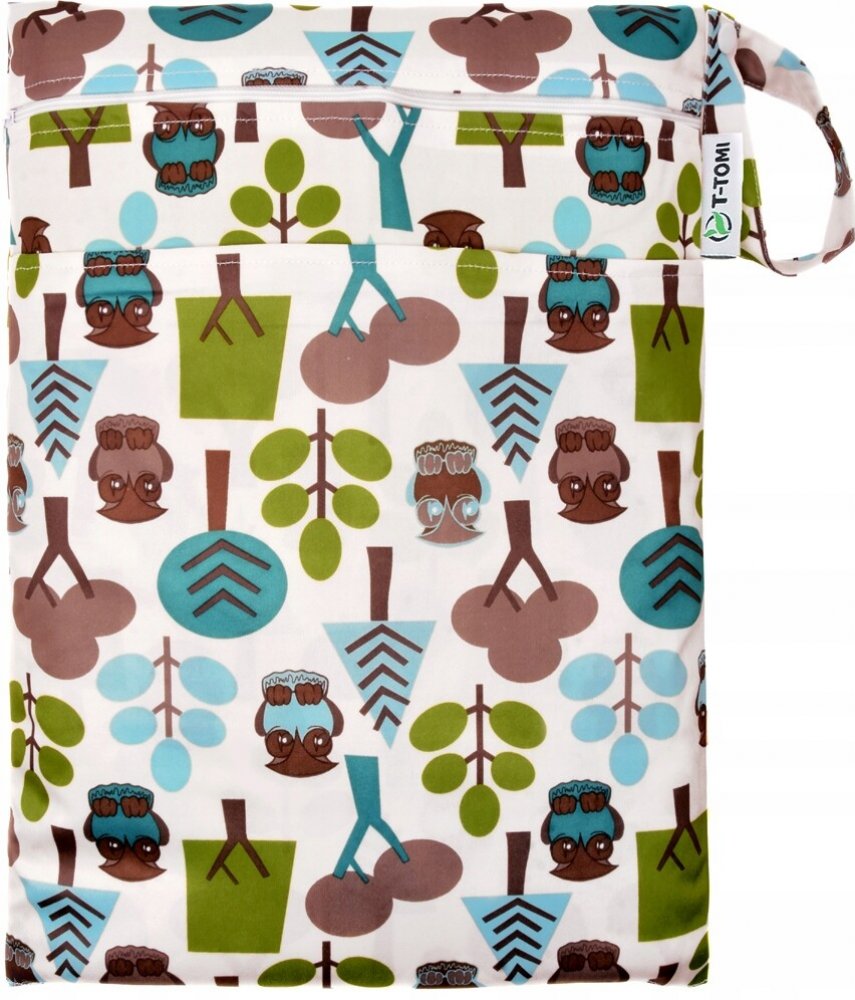 Nepromokavý sáček T-TOMI je vyrobený ze 100% polyesteru s PUL zátěrem. Díky dvěma velkým kapsám se zapínáním na zip a praktickým uchem s patentkou se stane Vaším nepostradatelným pomocníkem nejen doma ale i na cestách. Je vhodný nejen pro mokré pleny, ale i pro plavky, ručník, osušku, dudlík, deštník či jiné všestranné využití.