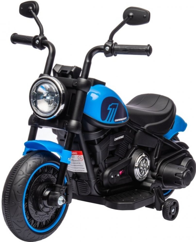Dětská elektrická motorka ve vzhledu Chopper. Motorka vhodná pro děti od 2 let. O pohon se stará motor o výkonu 20W, motorka je vybavena pomalým rozjezdem.