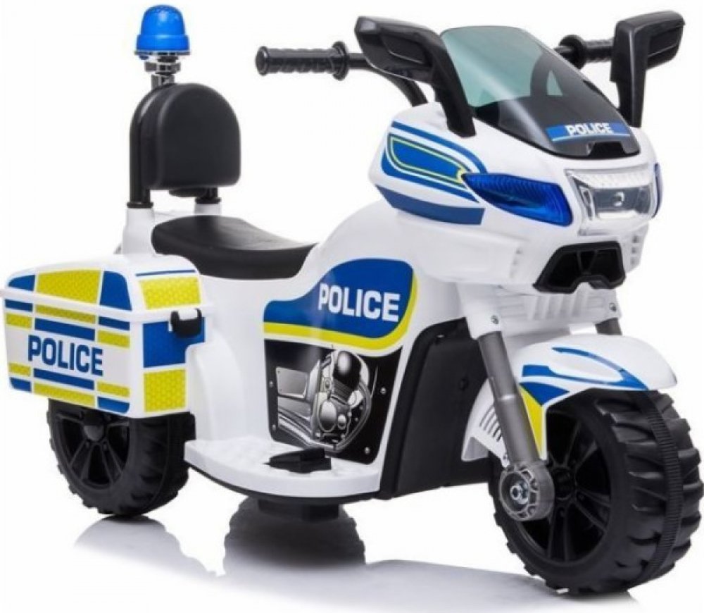 Dopřejte dětem akční jízdu s dětskou policejní motorkou na baterii v bílé barvě. Realistický vzhled, stabilní tříkolová konstrukce, běhounová kola s gumovým páskem a snadná montáž zajistí hodiny bezpečné zábavy a rozvoje motoriky. Ideální pro malé fanoušky policie od 2 let.
