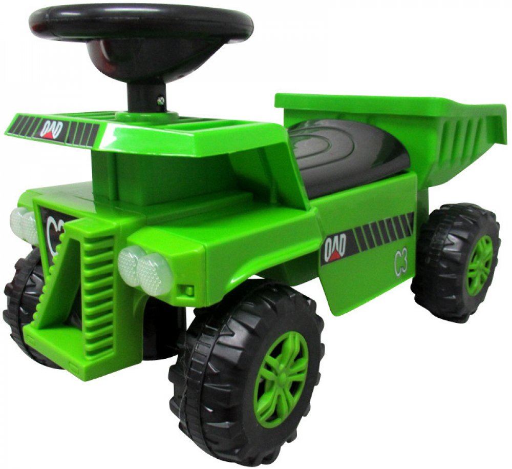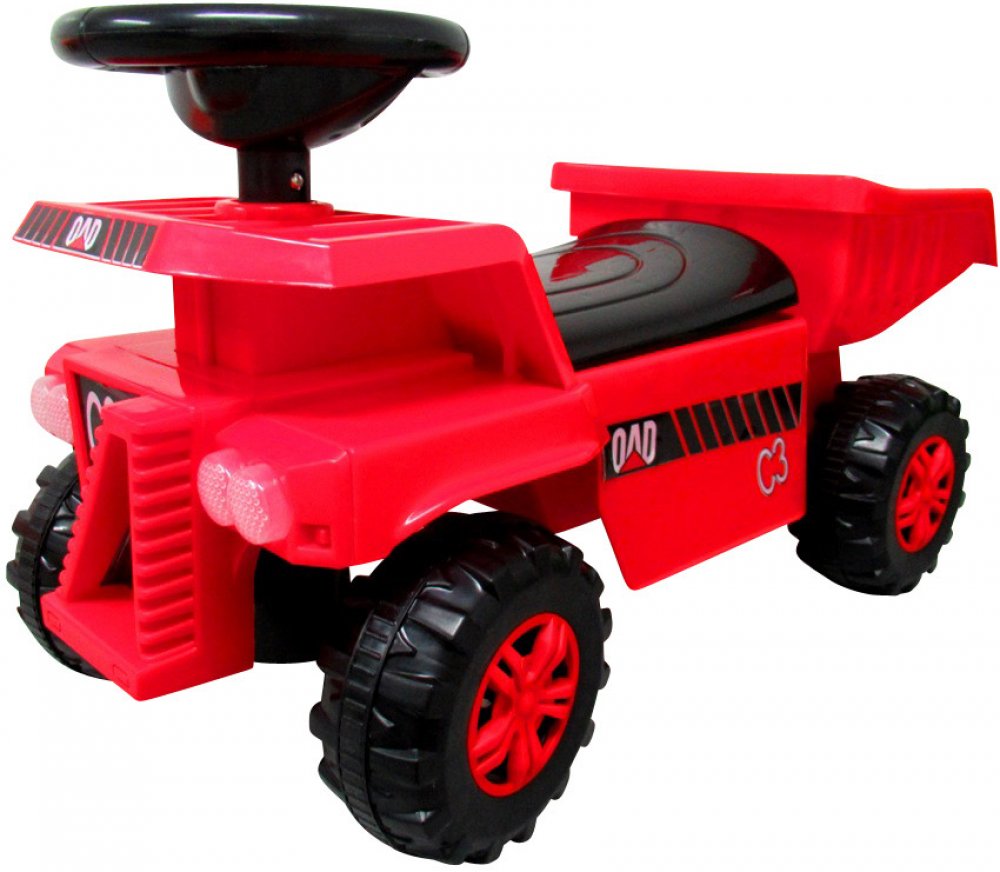 Dětské odrážedlo nákladní auto v červené, zelené nebo oranžové barvě. Dítě řídí odrážedlo samo, sedí za volantem a nohama se odráží. Dítě může s odrážedlem jezdit vpřed i vzad, umí zatočit doprava i doleva. Vozidlo je obecně určeno pro venkovní použití, ale jeho ergonomický design upřednostňuje a umožňuje jeho použití také ve větších místnostech, jako je terasa nebo obývací pokoj. Doporučený věk u...
