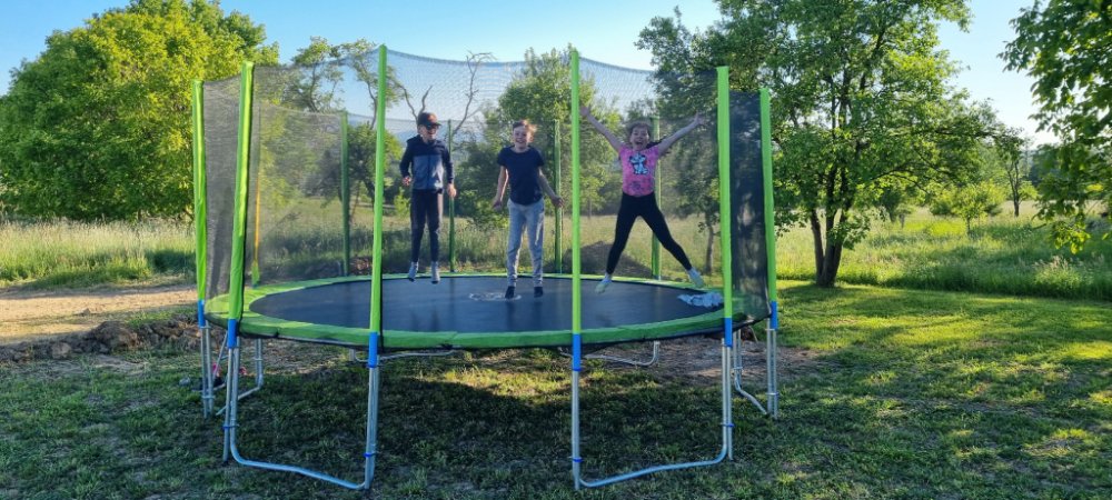 - zahradní trampolína o průměru 487 cm - trampolínová opdložka natažená 108 pozinkovanými pružinami, dlouhá 19 cm, potažená ochranným límcem - celý rám trampolíny je vyroben z pozinkované kalené oceli - 6 nohy ve tvaru písmene U významně zvyšující stabilitu konstrukce - síť natažená na 12 stožárech dosahujících do země, ...