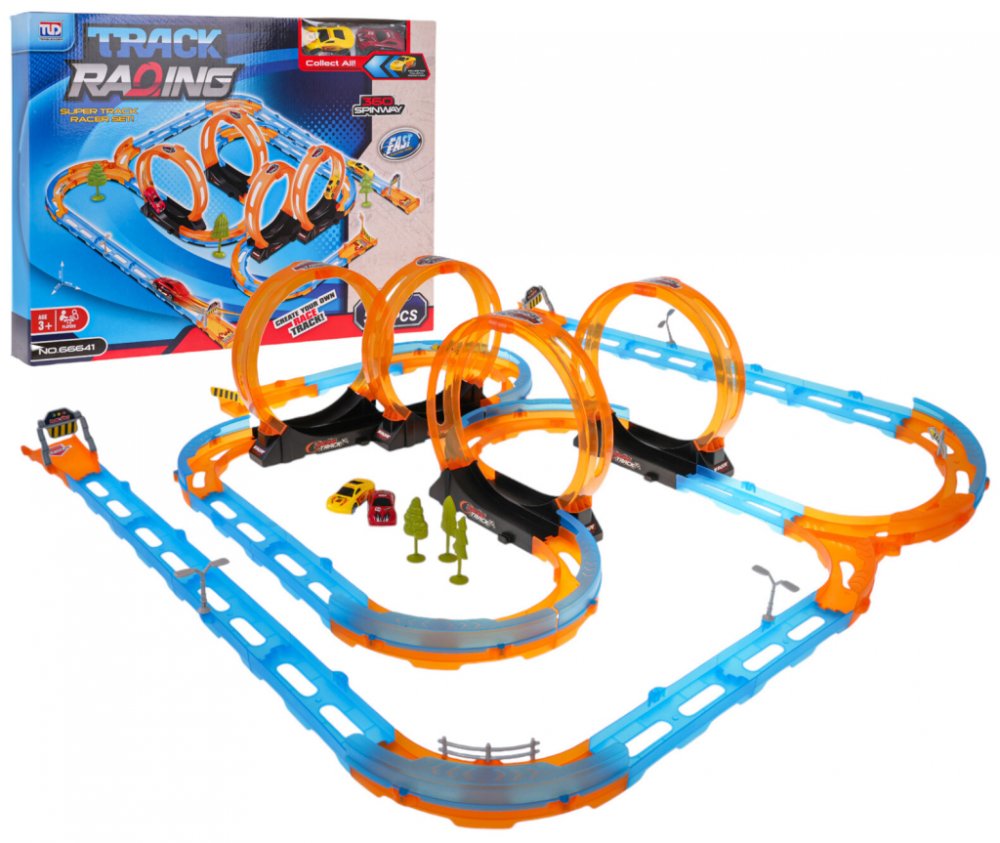 Objevte radost z dynamické hry s touto závodní dráhou, ideální pro děti od 3 let. Vyrobeno z vysoce kvalitního plastu, sestavuje se snadno z 59 dílů, aby se vytvořila vzrušující dráha plná výzev a zábavy.Funkce dráhy zahrnují:Vhodná pro děti od tří let.Čtyři 360° smyčky pro největší výzvy.Připraveno pro simultánní hru dvou hráčů.Vozidla s pohonem pull-back pro ještě zábavnější jízdu.Podpořte kreativitě a rychlost s touto skvělou závodní sadou!SpecifikaceSestavený rozměr:90 cm x 82 cm x 23 cmRozměry vozů:7 cm x 2,5 cm x 3,5 cmRozměry stromu:7 cm x 3 cmRozměr balení:54 cm x 41,5 cm x 7 cm