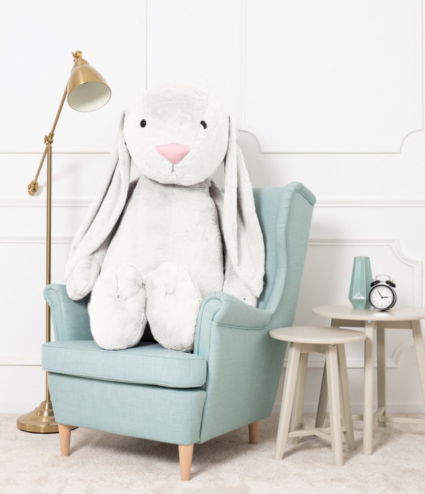 Velký plyšový králík FIGO 160 cm. Jedná se o nový model, který je k dispozici pouze v našem eshopu nebo na naší provozovně. Tento králík je velmi dobře naplněn plyšovým materiálem a proto je tak mohutný.
