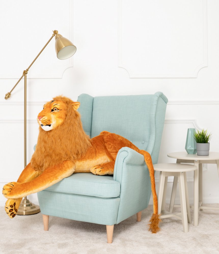 Velký plyšový lev 130 cm. Jedná se o nový model, který je k dispozici pouze v našem eshopu nebo na naší provozovně. Tento lev je velmi dobře naplněný plyšovým materiálem a proto je tak mohutný.