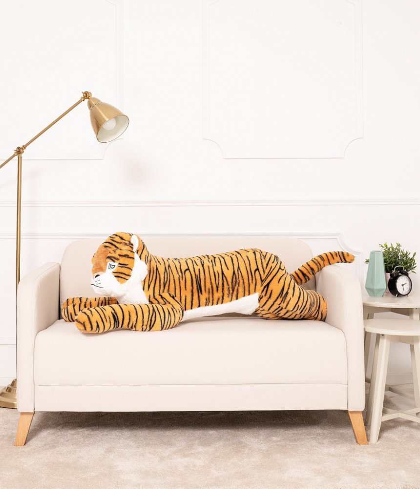 Velký plyšový tygr 100 cm. Jedná se o nový model, který je k dispozici pouze v našem eshopu nebo na naší provozovně. Tento tygr je velmi dobře naplněný plyšovým materiálem a proto je tak mohutný.