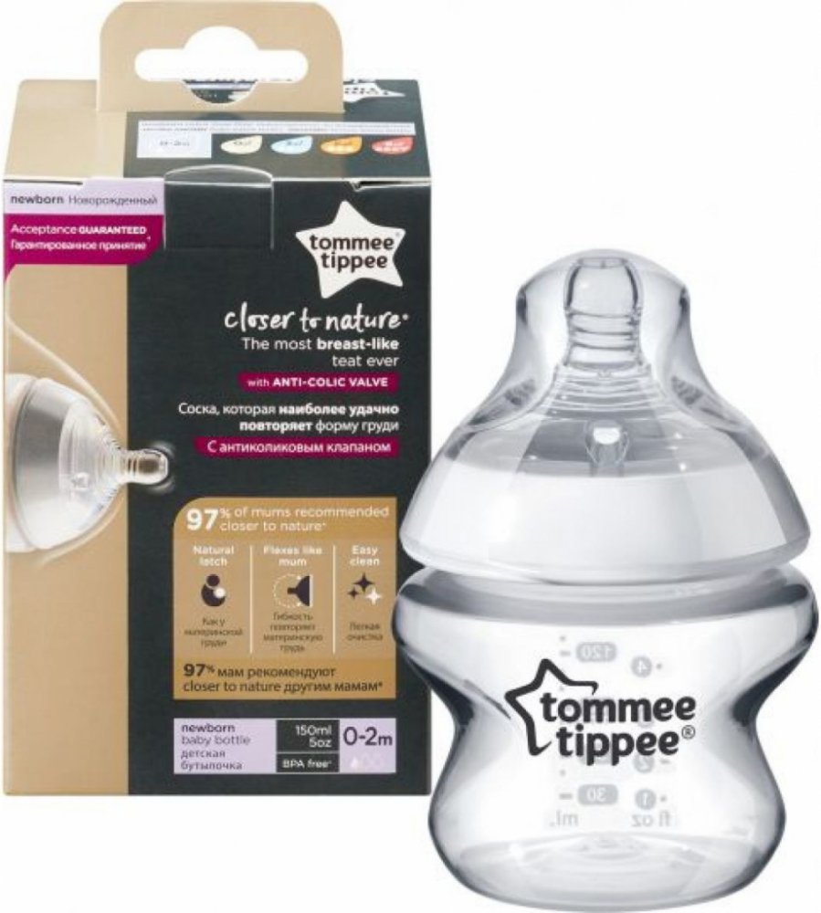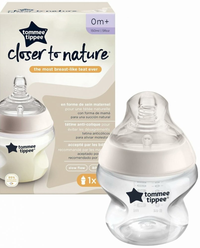 Kojenecká lahvička Tommee Tippee Closer to Nature s unikátní silikonovou savičkou, která svým tvarem a vlastnostmi připomíná mateřský prs. Teplou tekutinou uvnitř lahvičky se savička zahřeje na příjemnou teplotu, měkký a pružný konec savičky připomíná mateřskou bradavku. Dítě tak téměř nepociťuje rozdíl mezi kojením a krmením z této lahvičky.