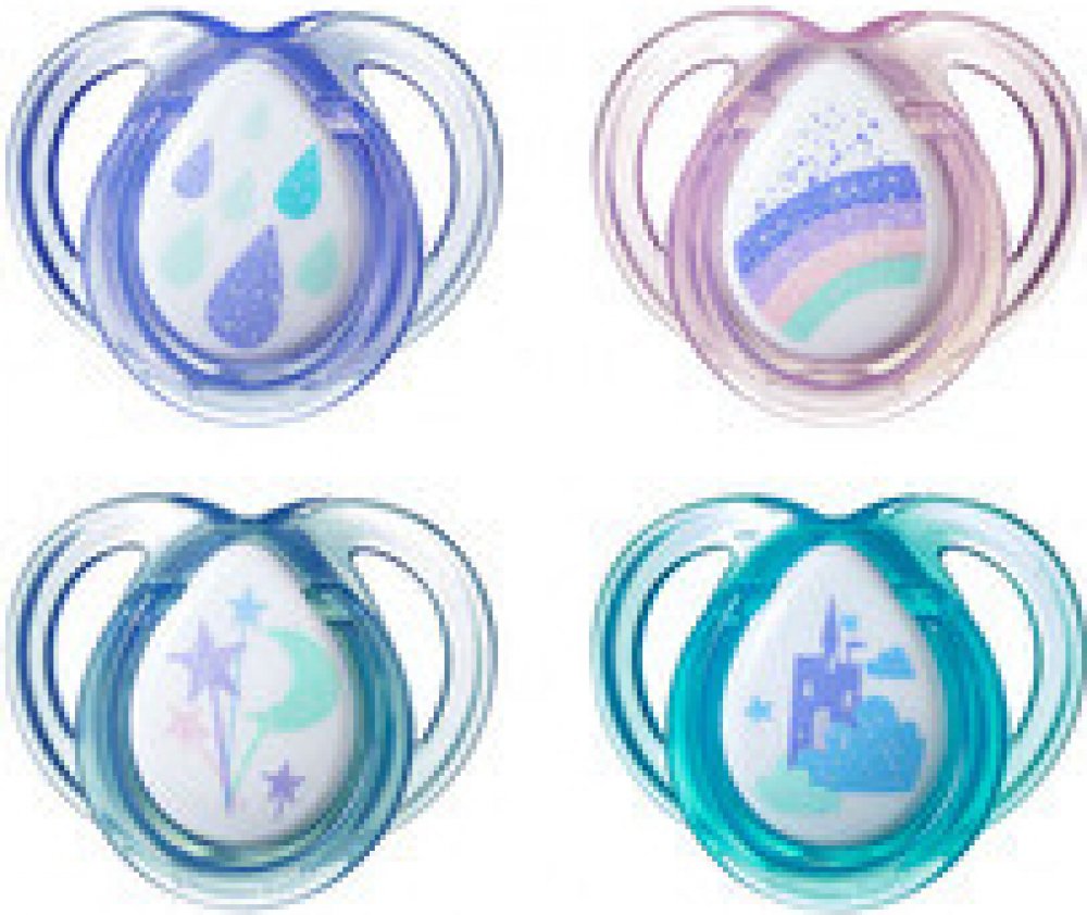 - Náústní kryt dudlíku je ve světlé barvě pro danné pohlaví dítěte.