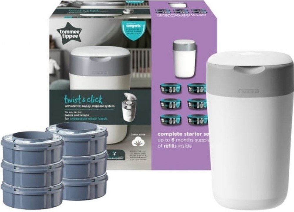 Žádný rodič, jehož dítě používá jednorázové plenky, se jistě neobejde bez praktického koše SANGENIC Twist & Click značky Tommee Tippee. Největší výhodou tohoto koše je zcela hygienické používání. Plenky jsou po vhození jednotlivě zabaleny do vícevrstvé antibakteriální fólie, takže bakterie a zápach neunikají ven. Koš není třeba často vynášet, pojme až 30 plen (počítáno pro velikost 2 - 5 kg). Koš je vybaven praktickým držadlem pro snadné vynesení jeho obsahu do popelnice. Ve výhodném balení najdete spolu s košem i 4 výměnné kazety s fólií. Koš na použité jednorázové plenky vám výrazně usnadní jejich likvidaci.
