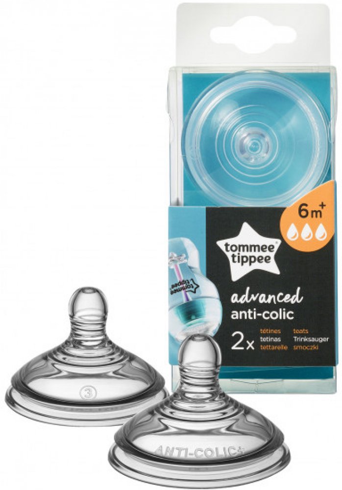 Náhradní savička TOMMEE TIPPEE C2N ANTI-COLIC rychlý průtok 6+ obsahuje ultracitlivý antikolikový ventil zajišťující dokonalý odvod vzduchu během krmení a umožňuje dítěti zcela plynulé sání bez polykání vzduchu.