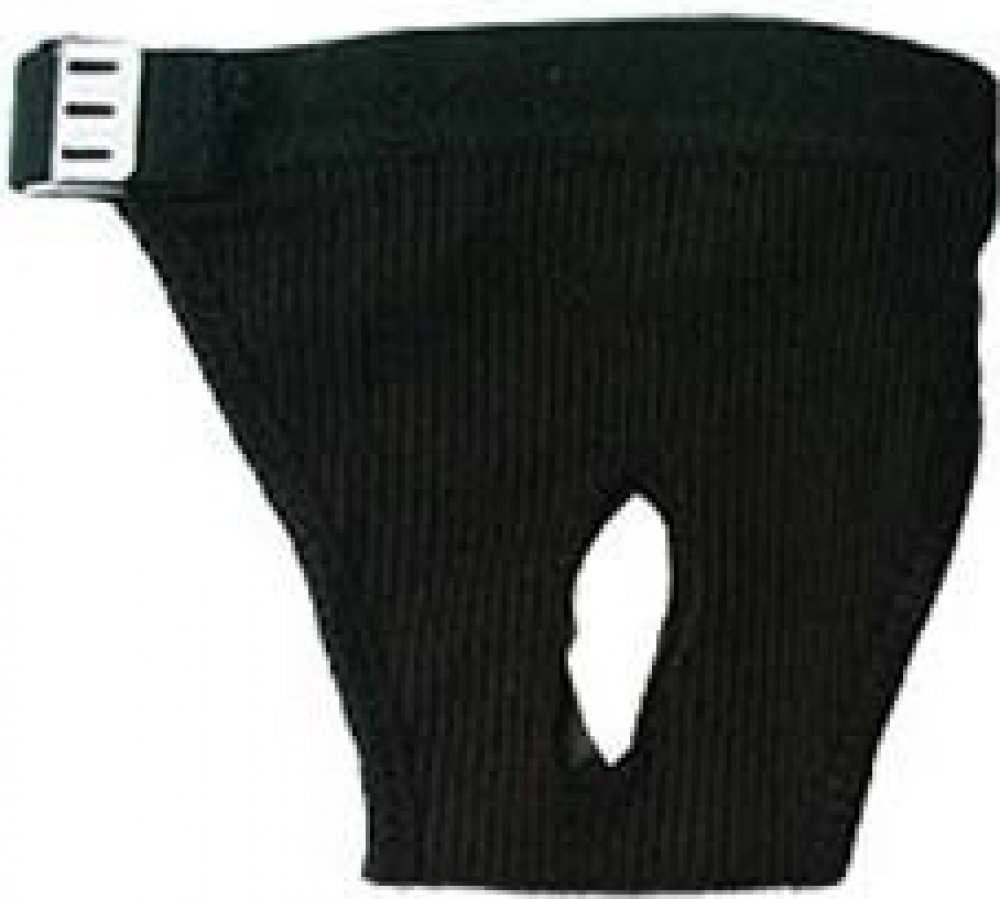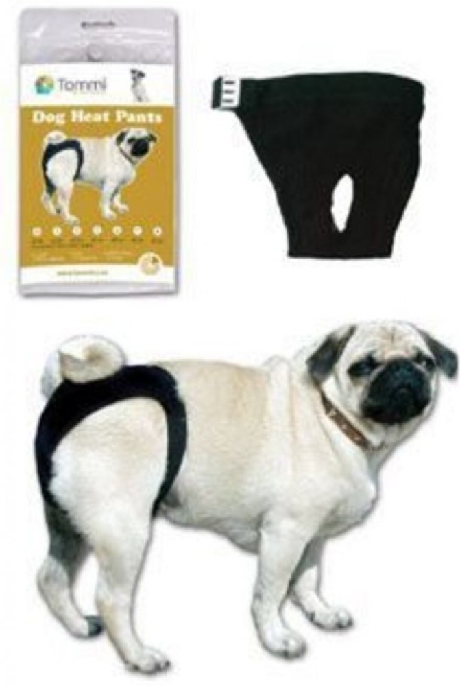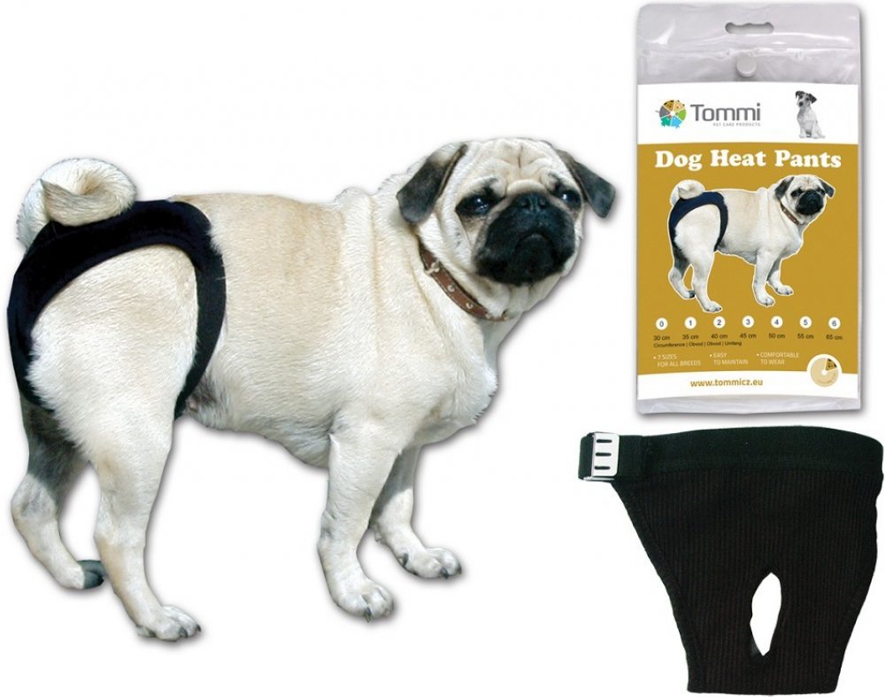 Materiál kalhotek je zvolený pro časté ruční praní. Kalhotky nesmí fenu obtěžovat, proto je obvodový lem pružný, zapíná se na kovovou sponu.