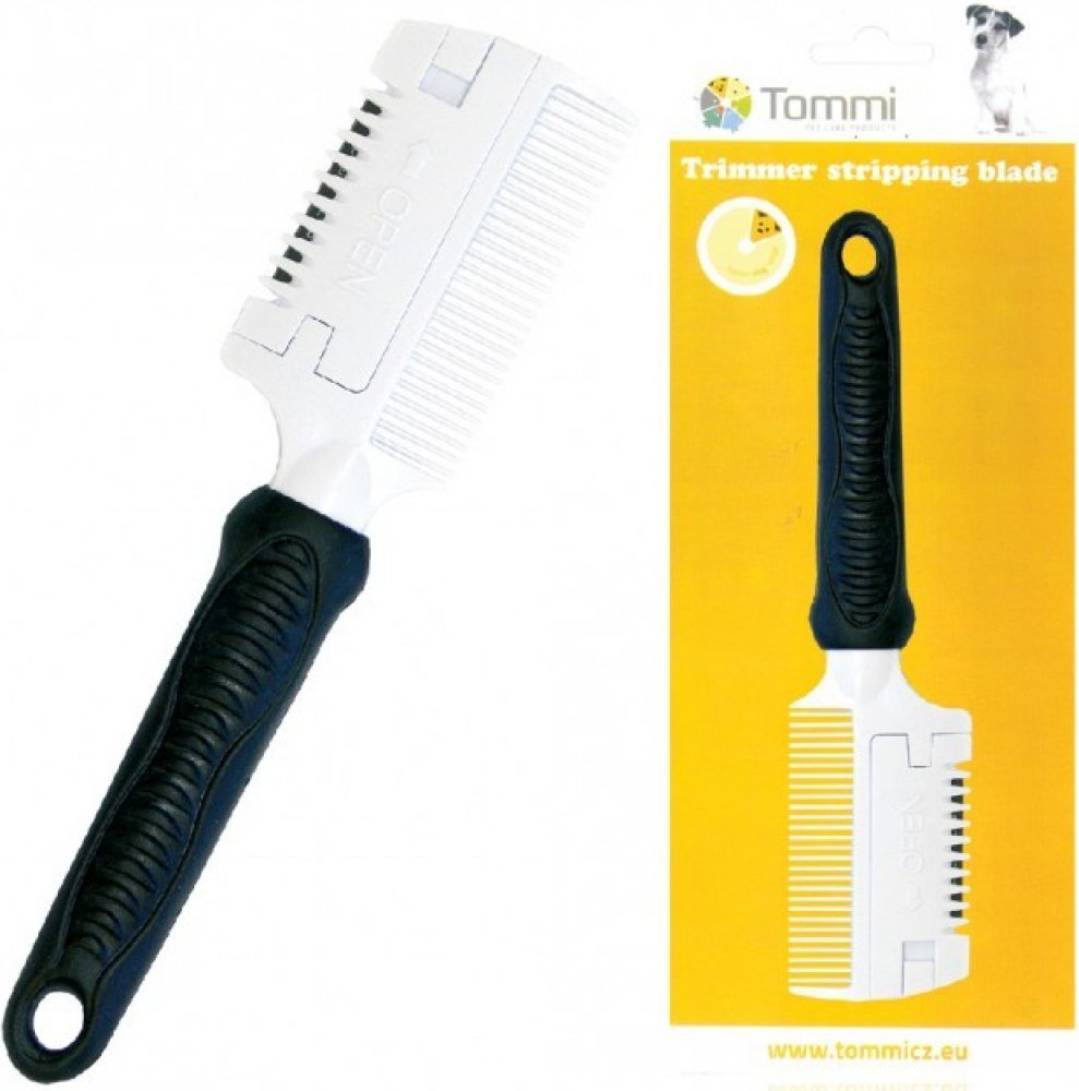 Žiletkový trimovací nůž Tommi na úpravu srsti psů. žiletku lze vyměnit (běžně k dokoupení) rukojeť opatřena protiskluzovou úpravou úprava srsti bez použití nůžek snadné zastřižení po směru růstu srsti Délka: 19x 4,5 cm (d,š)