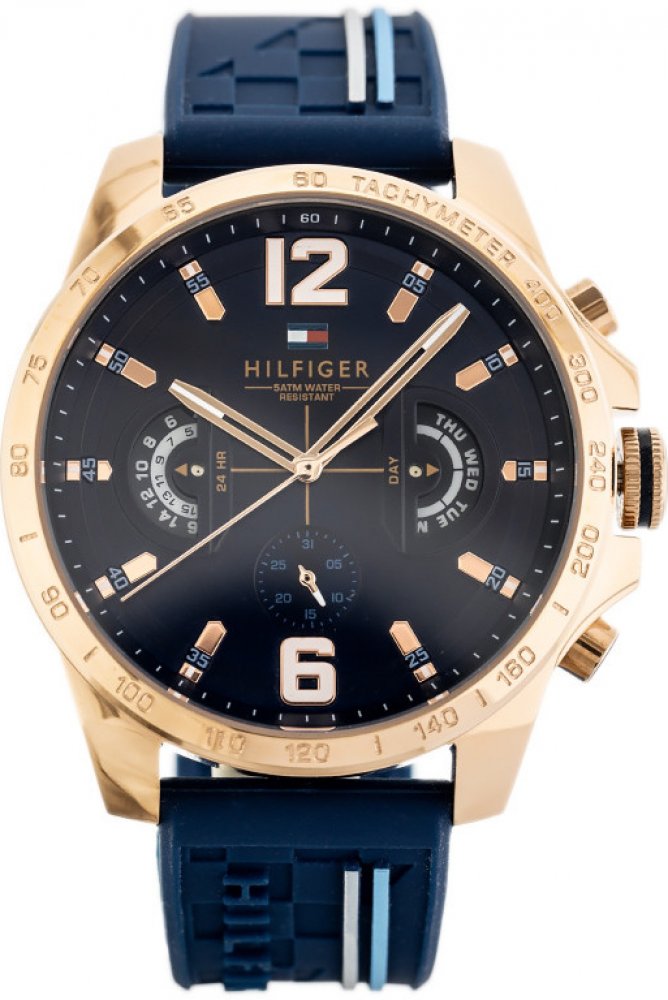 Tommy Hilfiger analogové silikon sportovní pánské bateriové - quartz pro běžné použití (30–50 m) 46.0 mm ocel 46 x 50 x 12 mm 50 m bateriové 98 g minerální bez osazení Decker kulaté modrá modrá na přezku 2.2 cm na ruku USA s arabskými číslicemi 4.6 cm velké 12.2 mm 22 mm s nenáročnou údržbou (quartz) bez chytrých funkcí