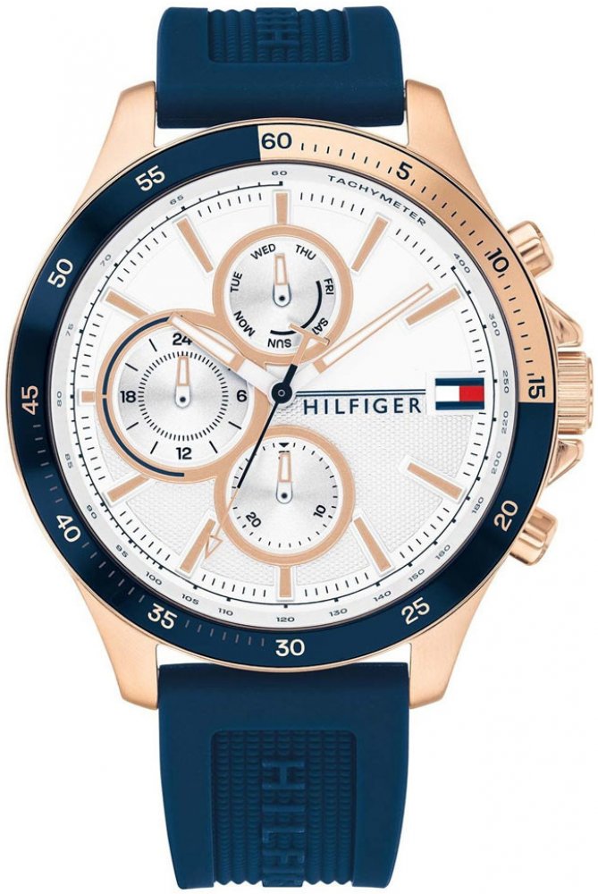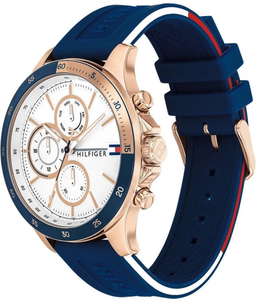 Tommy Hilfiger analogové silikon sportovní pánské bateriové - quartz 46.0 mm ocel 46 x 46 x 11 mm 50 m bateriové 77 g minerální 21 cm bez osazení kulaté modrá bílá s luminiscencí na přezku 2.1 cm na ruku bez číslic zlatá ocel 4.6 cm velké 11.0 mm 46.0 mm s nenáročnou údržbou (quartz) bez chytrých funkcí