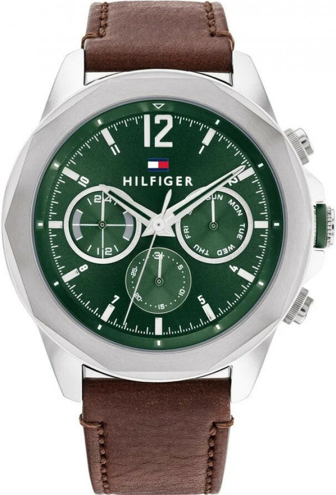 Tommy Hilfiger analogové kůže sportovní pánské bateriové - quartz ocel 50 m bateriové minerální bez osazení kulaté hnědá zelená s luminiscencí trnová spona na ruku USA s arabskými číslicemi stříbrná ocel pevná ocel 54 mm 3 12 mm 46 mm s dočasným svícením (luminiscence/LED) bez chytrých funkcí