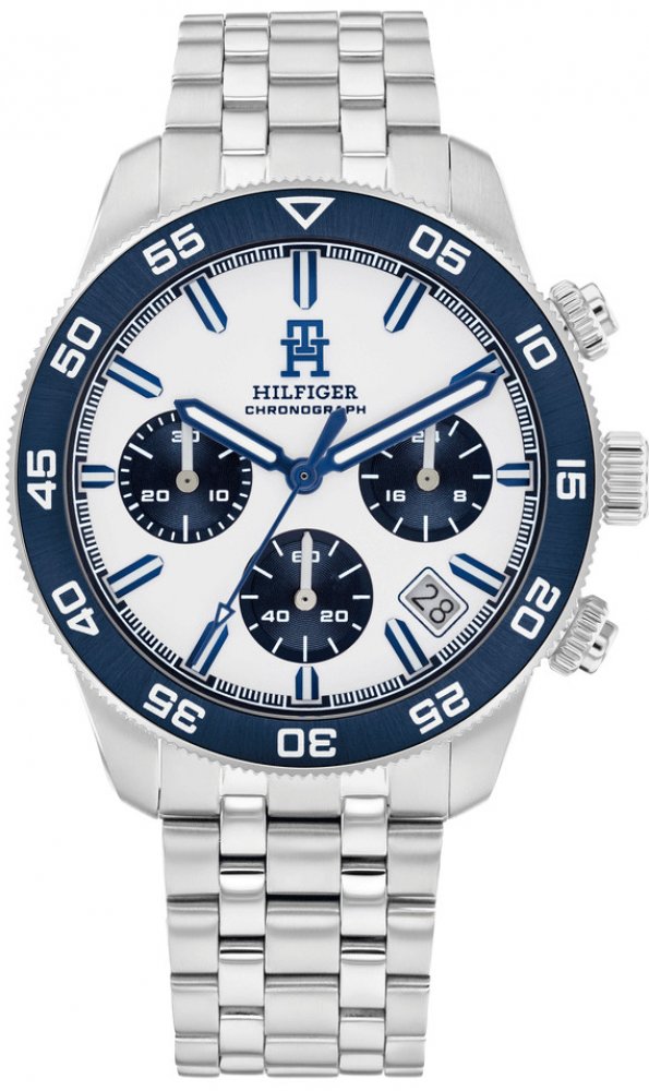 Značka: TOMMY HILFIGER | Kolekce: TH85 | Model: 1792157 | Záruka: 2 roky | Barva: stříbrná | Barva pouzdra: modrá | Barva pouzdra: stříbrná | Materiál pouzdra: ocel | Napájení: baterie | Materiál řemínku: ocel | Funkce: stopky | Funkce: Datum - den v měsíci | Vodotěsnost: 50M/5ATM | Sklo: minerální | Tvar: kulaté | Typ zapínání: překlápěcí přezka | Číslice na ciferníku: indexy | Určení: pánské | T...