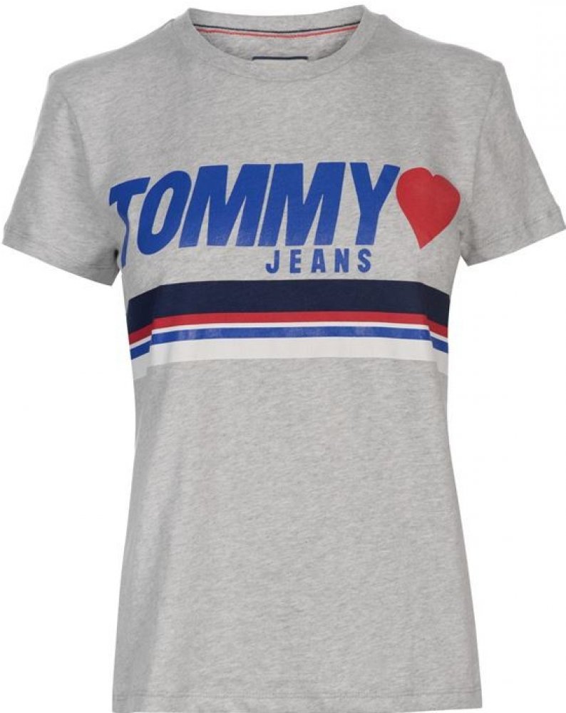 s krátkým rukávem Tommy Hilfiger šedá s kulatým výstřihem