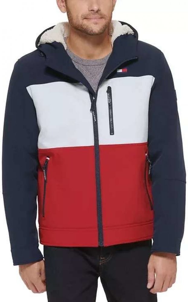 Celá podšívka z fleecu sherpa; nášivka s vlajkou Tommy na levé straně hrudi a na levé paži; detail loga Hilfiger na kapuci