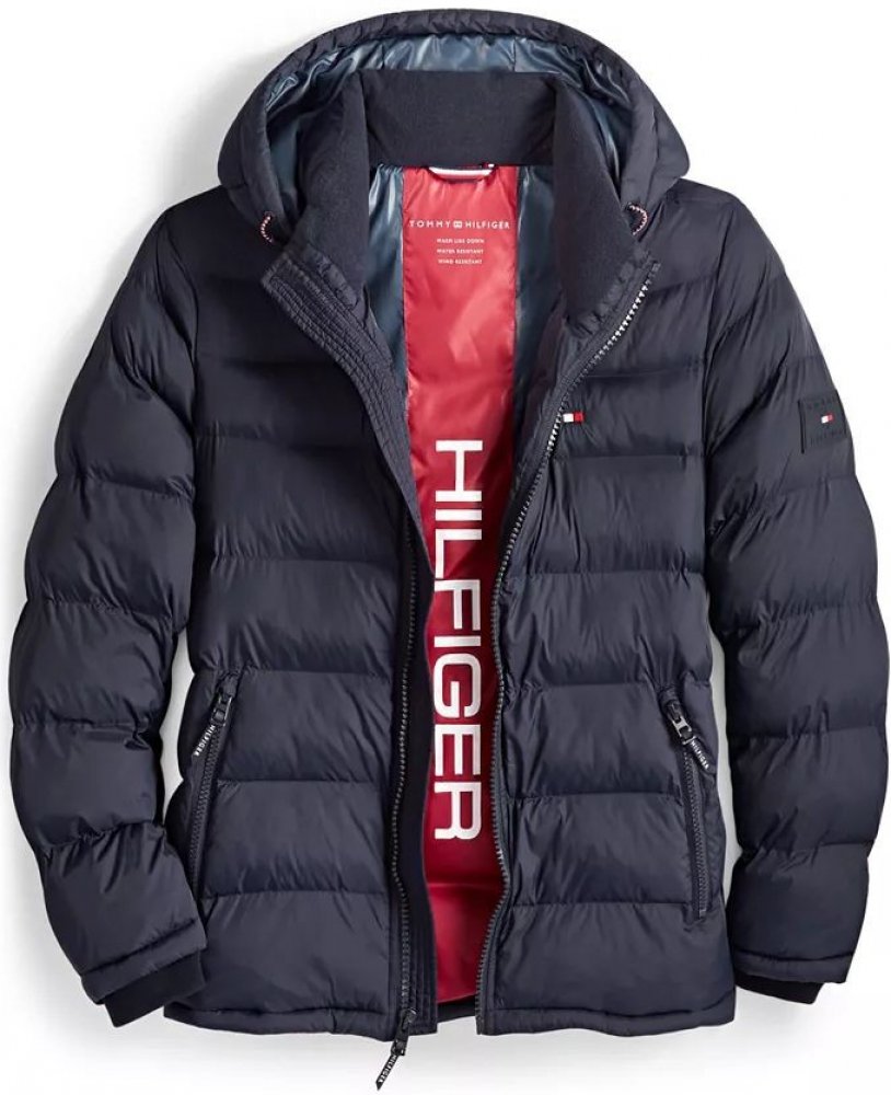 Tommy Hilfiger 100 % polyester bundy zimní 100 % polyester modrá regular fit jednobarevné pro každodenní nošení