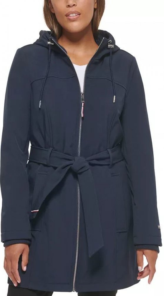 Tommy Hilfiger nabízí stylové kousky, které vám pomohou udržet déšť na uzdě, v této softshellové bundě s páskem na zavazování.