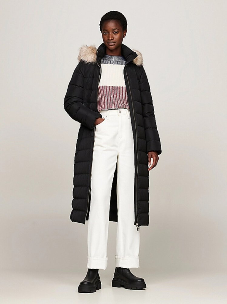 Dámský péřový kabát od Tommy Hilfiger.Kabát má zapínání na zip po celé délce s vnitřní klopou.Kapuce s umělým kožíškem (lze odepnout).Kabát má dvě boční kapsy se zapínáním na zip.Materiál:100 % PolyesterVýplň:70 % Kachní chmýří30 % PeříUmělá kožešina:94 % Modacryl6 % AkrylStřih:Regular fit