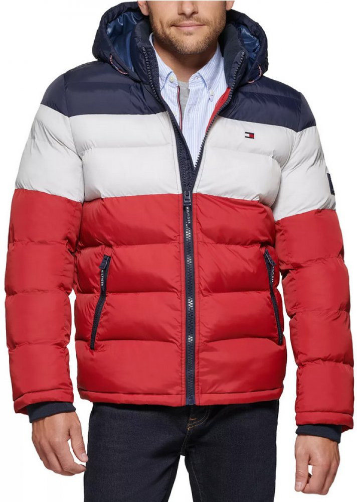Tato větru a vodě odolná zimní bunda Tommy Hilfiger s kapucí, která je na dotek podšitá příjemným mikrofleecem, hřeje díky žebrovaným pleteným manžetám.