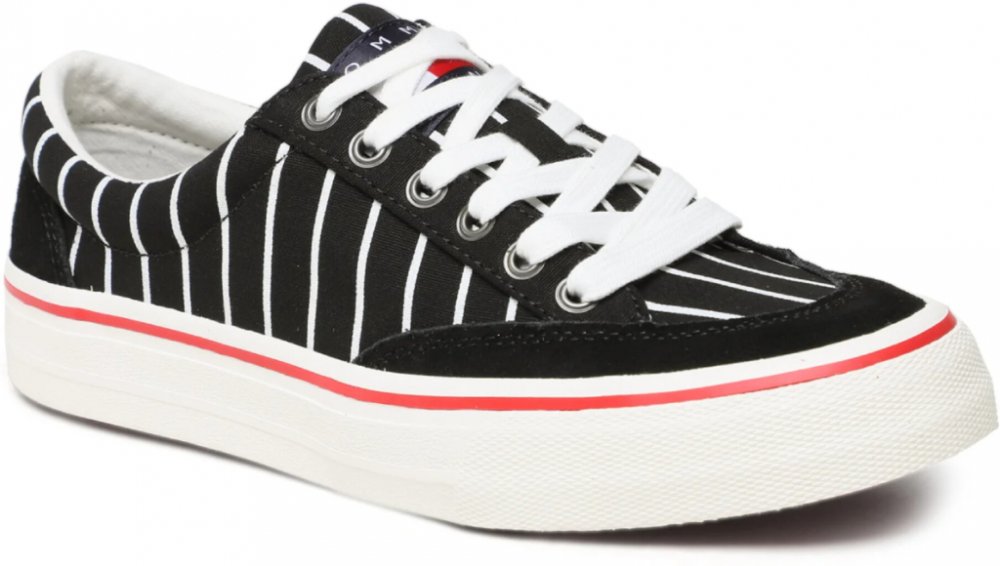 Pánské černé pruhované tenisky od Tommy Jeans.Materiál:svršek - textilkůževnitřek - textilpodešev - syntetika