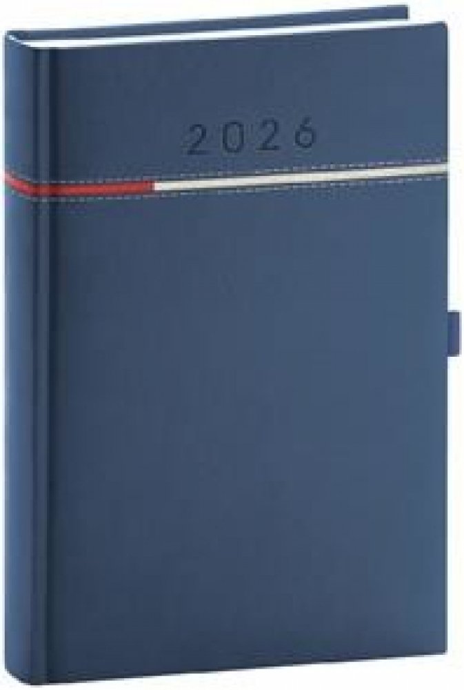 Denní diář Tomy 2026 v modro-červené barvě.